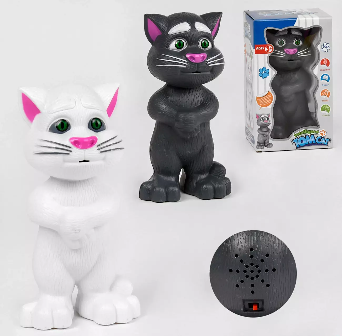З інтерактивною іграшкою "Кіт Том" не вдасться занудьгувати, адже він прекрасний співрозмовник, веселун та звичайно ж талановитий співак! Особливості: - сенсорне управління; - співає 10 запальних пісень; - котик розповідає цікаві історії; - функціональна іграшка неодмінно подарує своєму власнику масу позитивних емоцій та викличе непідробне захоплення. До котика Томаса потрібно знайти підхід, щоб він зміг Вас як слід потішити: - торкніться лівого вушка і він заспіває запальних 10 пісень; - праве вушко відповідає за цікаві історії англійською; - якщо торкнуться лапок котика і сказати фразу він уважно вислухає Вас та точно повторить; - нижні лапки активують короткі фрази обурення англійською; - дотики до мордочки також супроводжуються звуками невдоволення; - якщо торкнуться животика активується веселий сміх. Іграшка працює від 3х батарейок типу "АА" - в комплект не входять.