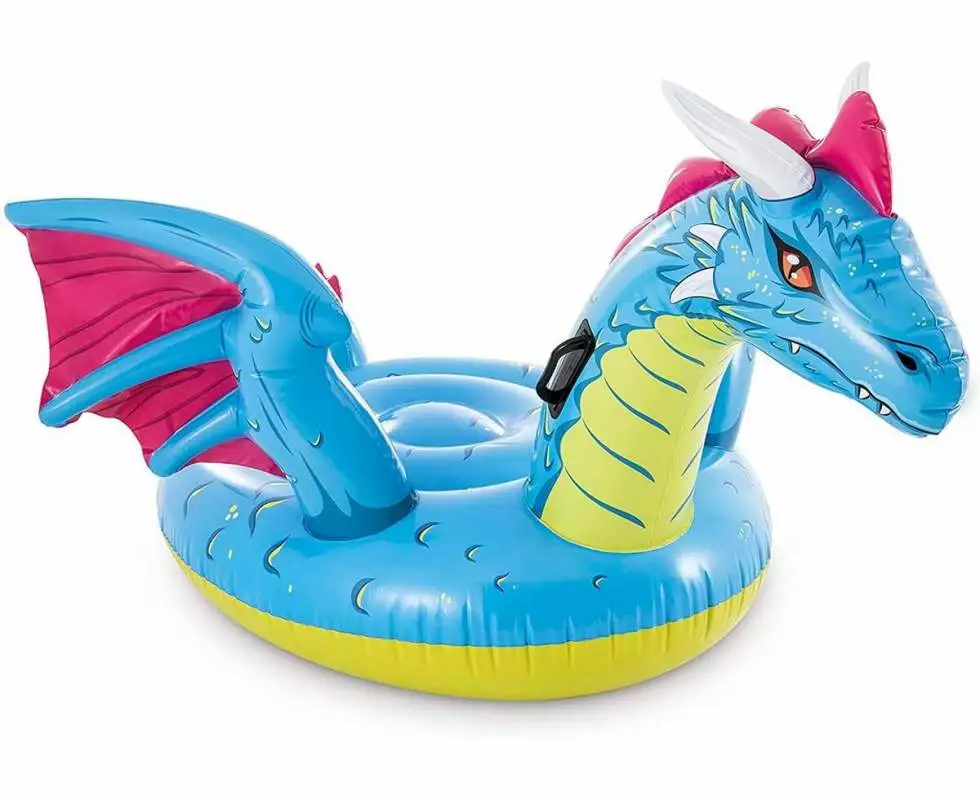 Надувний плотик "Дракон" 201х191 см Мрієте осідлати дракона? Тоді цей плотик для вас. Надувний дракон розмірами 201х191 см чудово підходить для ігор та відпочинку на воді. Складається з 2 повітряних камер та оснащений 2 зручними ручками-тримачами. Характеристики: Розмір: 201х191 см Допустима вага: 40 кг Вік: від 3 років Матеріал: вініл, товщина вінілу 0,3 мм. 2 ручки 2 повітряні камери