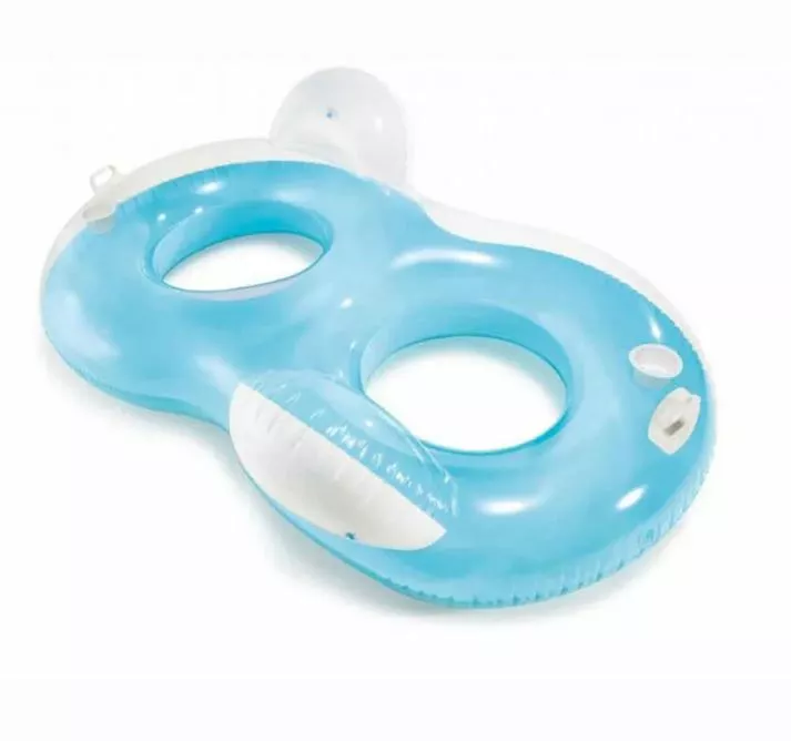 Надувне двомісне коло зручна та стильна конструкція для відпочинку на воді. Надувне коло оснащене двома надувними спинками та пластиковими ручками. • Розмір: 117?198 см • Коло з вінілу, товщина 0.45мм • 2 пластикові ручки • 2 підставки під склянки • Комплект для ремонту