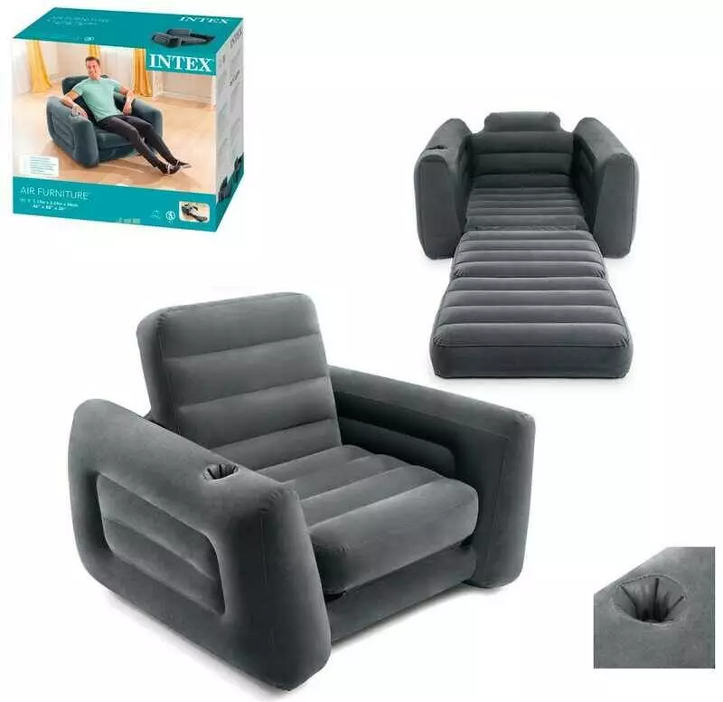 Intex Надувне крісло 66551 NP (2) 117х224х66 см., розкладається, з підставкою для склянки, в коробці