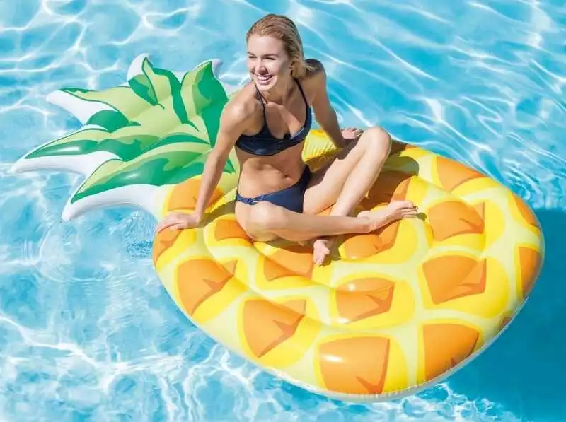 Кількість місць: 2 Максимальне навантаження: 120 кг Розмір 216х124см Надувний матрац-плотик для плавання "Ананас" 58761 EU із серії Islands & Lounges від Intex стане чудовим способом провести час весело і захоплююче на воді або розслабитися під час спекотного літнього дня в басейні. Матрас відразу привертає увагу своїм яскравим барвистим дизайном. Виконаний він формі величезного ананаса. Реалістичність і максимальна наближеність до цього фрукту робить зовнішній вигляд матраца соковитим та цікавим. Матрас складається з однієї повітряної камери і виконаний з високоякісного вінілу товщиною 0.30 мм. Усередині нього також встановлено вінілові перегородки.