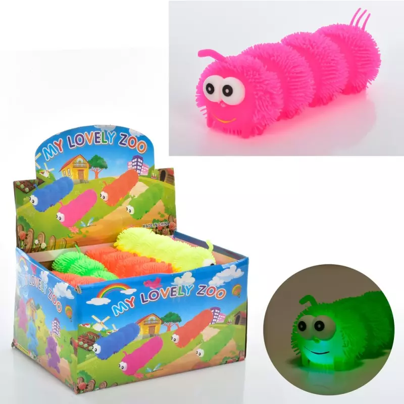 Їжачок MS 3573 антистрес, гусениця, 6 кольорiв, 12 шт. в диспл., 32-18-23 см.