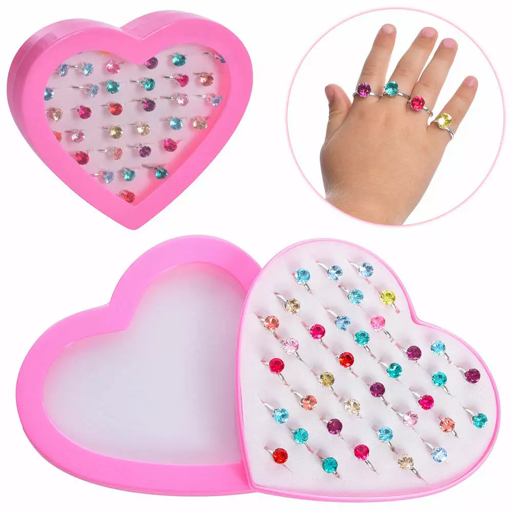 Каблучка RING-15 мет., 36 шт. (мікс кольорів) в диспл. (серце), 15,5-14-3 см.