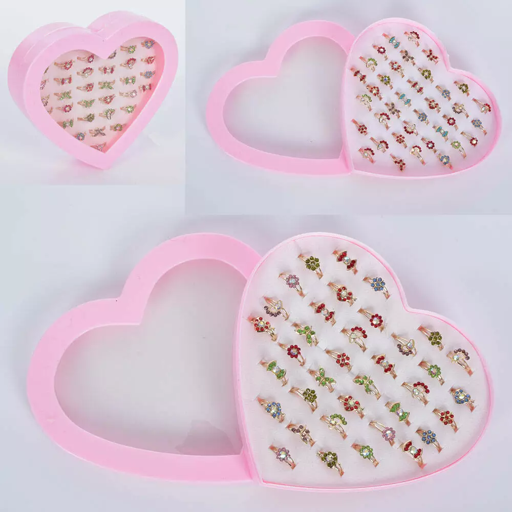 Каблучка RING-2 мет., 36 шт. (мікс кольорів) в диспл. (серце), 15,5-14-3,5 см.