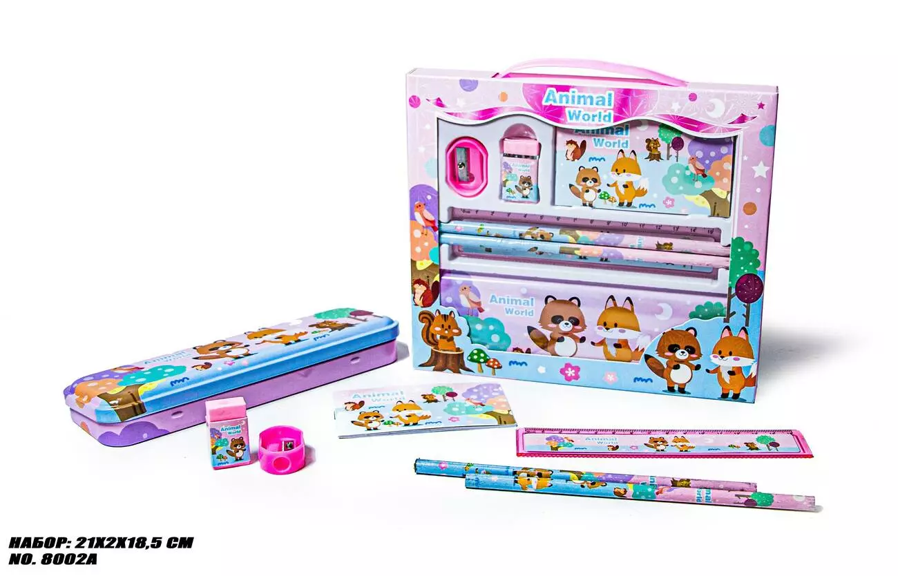 <p>Набор школьных пренадлежностей в подарочной упаковке </p><br /> <p><strong>В набор входит:</strong></p><br /> <ul><br /> <li> пенал</li><br /> <li> ластик,</li><br /> <li> точилка для карандашей,</li><br /> <li> блокнот,</li><br /> <li>2 карандаша,</li><br /> <li> линейка</li><br /> </ul><br />