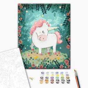 У набір входить: бавовняне полотно на дерев'яному підрамнику з нанесеною пронумерованій схемою майбутньої картини 3 кисті різної товщини акрилові пронумеровані фарби кріплення до стіни для готової картини