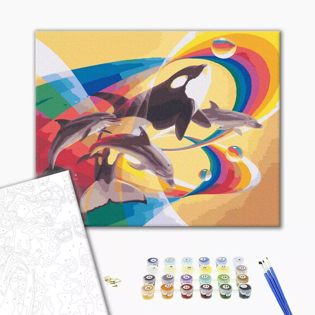 У набір входить: бавовняне полотно на дерев'яному підрамнику з нанесеною пронумерованій схемою майбутньої картини 3 кисті різної товщини акрилові пронумеровані фарби кріплення до стіни для готової картини