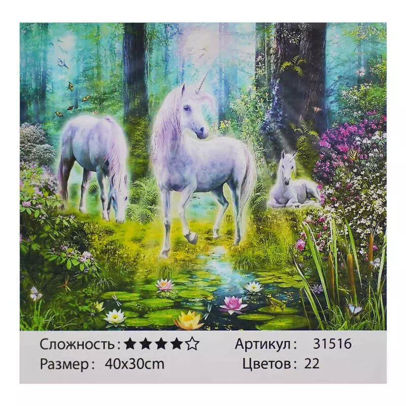 Картина за номерами HCEG 31516 (30) ""TK Group"", 30х40 см, ""Єдинороги на галявині"", у коробці