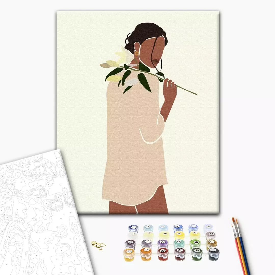 У набір входить: бавовняне полотно на дерев'яному підрамнику з нанесеною пронумерованій схемою майбутньої картини 3 кисті різної товщини акрилові пронумеровані фарби кріплення до стіни для готової картини