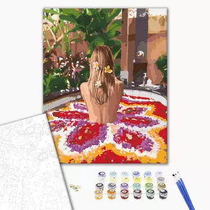У набір входить: бавовняне полотно на дерев'яному підрамнику з нанесеною пронумерованій схемою майбутньої картини 3 кисті різної товщини акрилові пронумеровані фарби кріплення до стіни для готової картини
