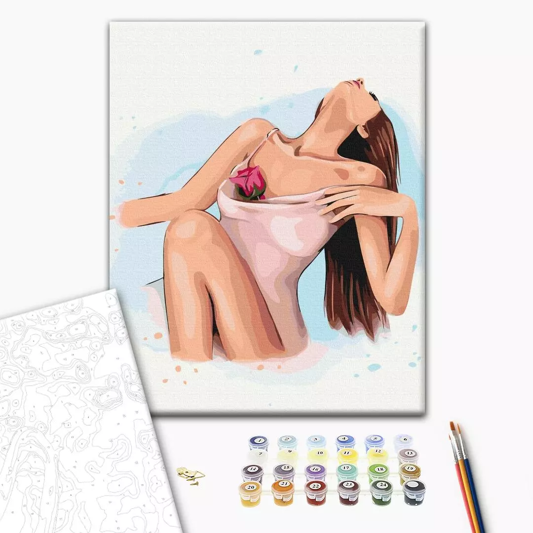 У набір входить: бавовняне полотно на дерев'яному підрамнику з нанесеною пронумерованій схемою майбутньої картини 3 кисті різної товщини акрилові пронумеровані фарби кріплення до стіни для готової картини