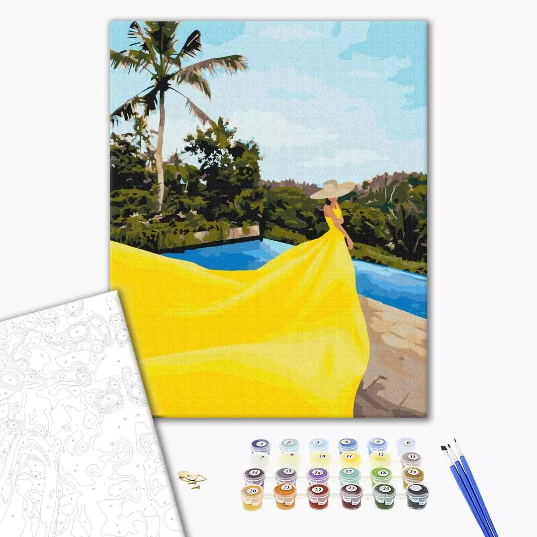 У набір входить: бавовняне полотно на дерев'яному підрамнику з нанесеною пронумерованій схемою майбутньої картини 3 кисті різної товщини акрилові пронумеровані фарби кріплення до стіни для готової картини