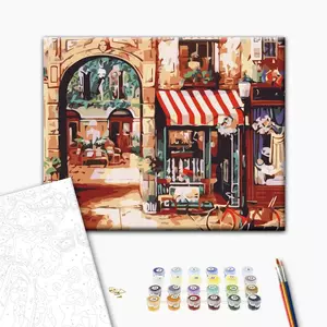 У набір входить: бавовняне полотно на дерев'яному підрамнику з нанесеною пронумерованій схемою майбутньої картини 3 кисті різної товщини акрилові пронумеровані фарби кріплення до стіни для готової картини