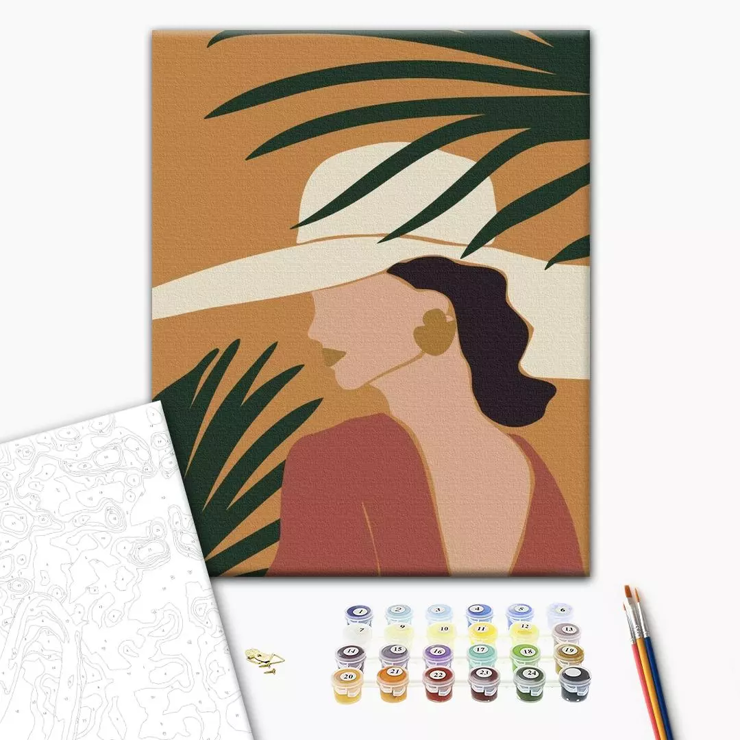 У набір входить: бавовняне полотно на дерев'яному підрамнику з нанесеною пронумерованій схемою майбутньої картини 3 кисті різної товщини акрилові пронумеровані фарби кріплення до стіни для готової картини