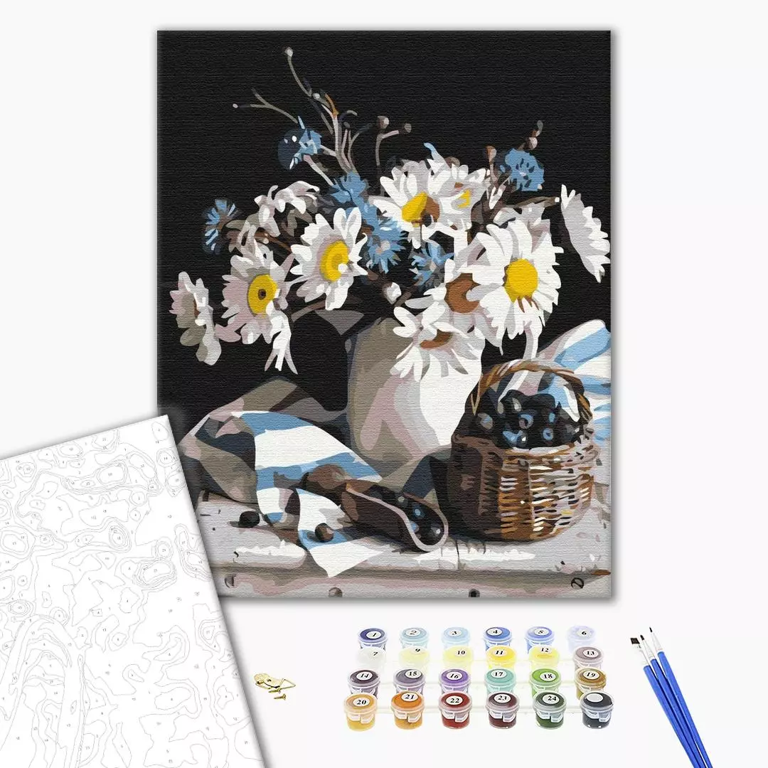 В набір входить: - бавовняне полотно на дерев'яному підрамнику з нанесеною пронумерованою схемою майбутньої картини - 3 пензлики різної товщини - акрилові пронумеровані фарби - кріплення до стіни для готової картини - картина запакована в плівку Зверніть увагу, що кольори можуть несуттєво відрізнятися від показаних на фото!