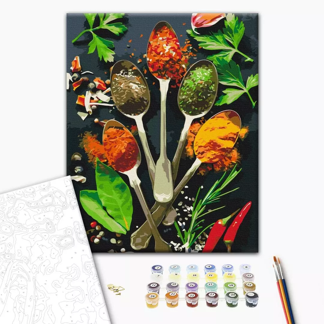 У набір входить: бавовняне полотно на дерев'яному підрамнику з нанесеною пронумерованій схемою майбутньої картини 3 кисті різної товщини акрилові пронумеровані фарби кріплення до стіни для готової картини
