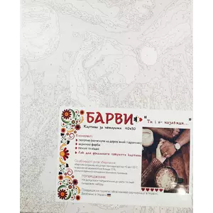 Відчуй себе справжнім художником! Використовуй розпис по номерам і твори шедеври! Дана картина добре прикрасить будь-який інтер'єр і подарує кожному твоєму гостю відчуття перебування вдома у справжнього генія! Увага! Кольори і чіткість картини можуть відрізнятися. Комплектація Набору для малювання: - натягнутий на дерев'яну рамку прогрунтоване полотно, з нанесеними і пронумерованими контурами квітів малюнка. Полотно і весь набір запаяний в стрейч плівку; - настінні кріплення 2 шт. і саморізи; - пронумеровані акрилові фарби в щільно закритих контейнерах (від 14 до 36 кольорів); - кисті (від 3 до 4 шт).