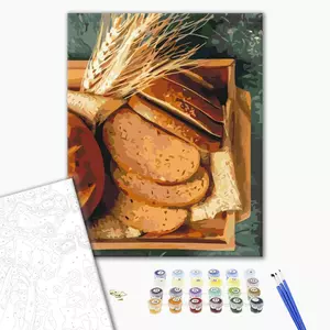 У набір входить: бавовняне полотно на дерев'яному підрамнику з нанесеною пронумерованій схемою майбутньої картини 3 кисті різної товщини акрилові пронумеровані фарби кріплення до стіни для готової картини