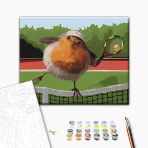 У набір входить: бавовняне полотно на дерев'яному підрамнику з нанесеною пронумерованій схемою майбутньої картини 3 кисті різної товщини акрилові пронумеровані фарби кріплення до стіни для готової картини