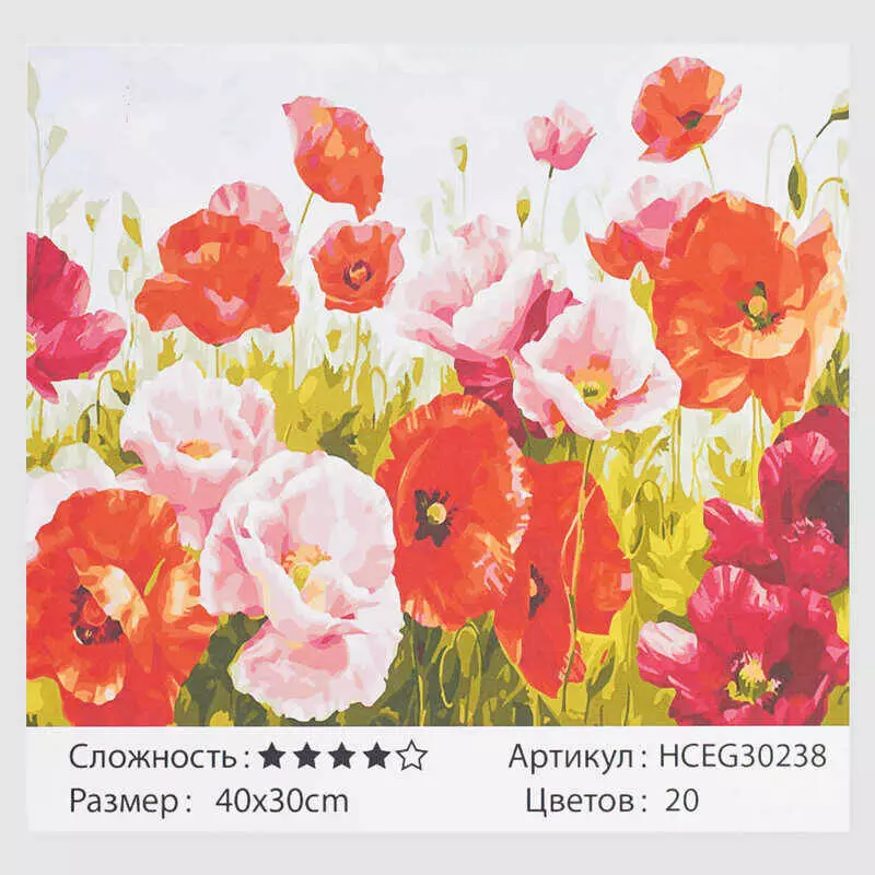 Картини за номерами HCEG 30238 (30) ""TK Group"", ""Маки"", 40х30 см, у коробці