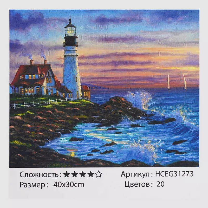 Картини за номерами HCEG 31273 (30) ""TK Group"", ""Вечірній маяк"", 40х30 см, в коробці