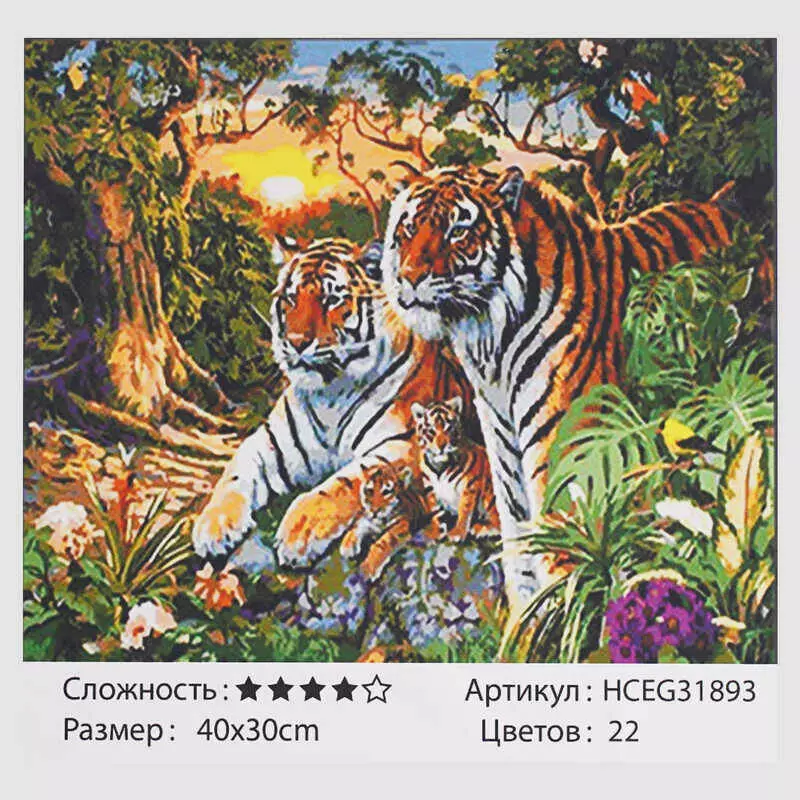 Картини за номерами HCEG 31893 (30 ""TK Group"", ""Родина тигрів"", 30*40 см , в коробці
