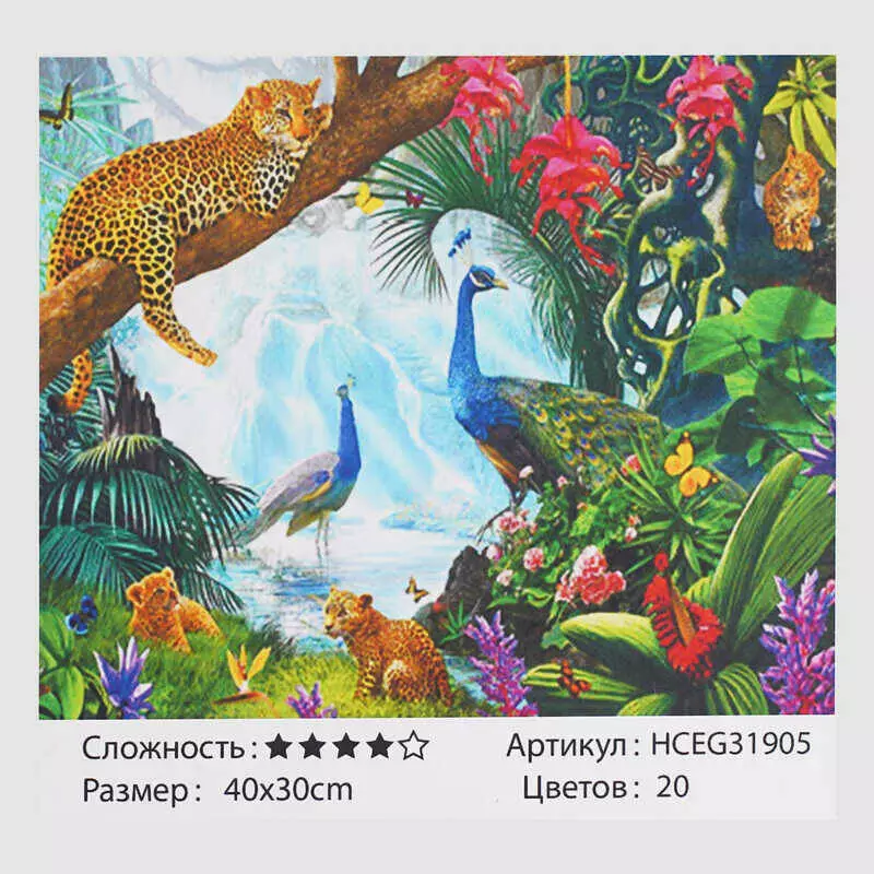 Картини за номерами HCEG 31905 (30) ""TK Group"", ""Леопарди та пави"", 40*30см, в коробці