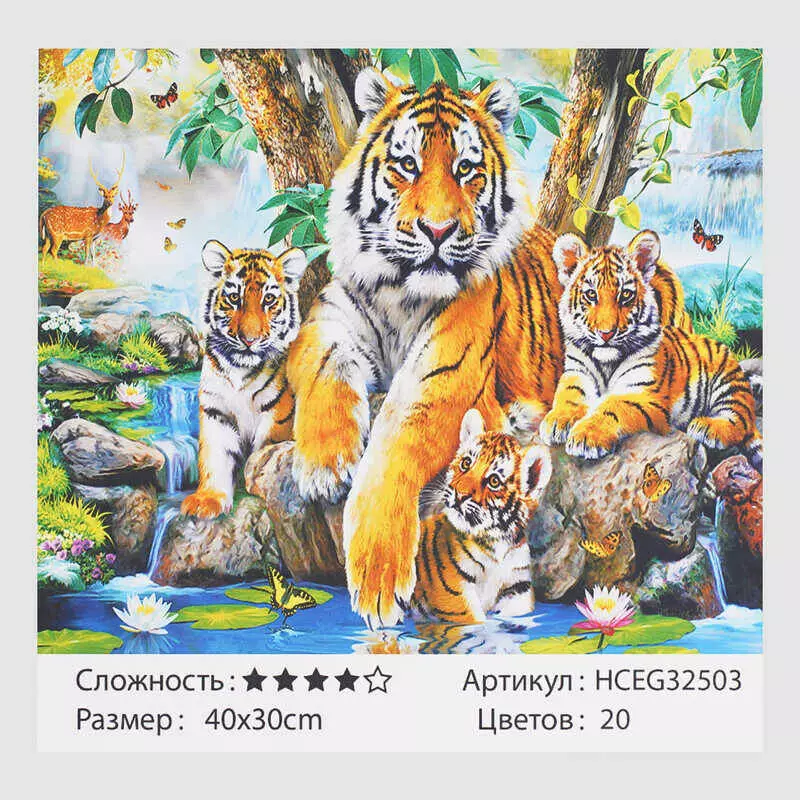 Картини за номерами HCEG 32503 (30) ""TK Group"", ""Родина тигрів"", 40*30 см, в коробці