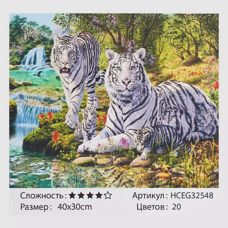 Картини за номерами HCEG 32548 (30) ""TK Group"", ""БІлі тигри"", 40*30см, в коробці