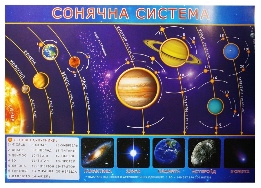 Картонні картки, на кожній з карток зображено планети сонячної системи та інші небесні тіла.