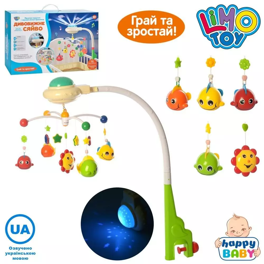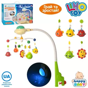Карусель HB 0004 на ліжечко, підвіски 5 шт., проектор нічного неба, світло, муз., бат., кор., 50-34-1