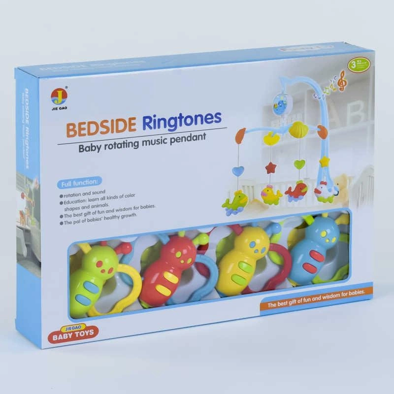 Дитяча музична карусель - чудова розвиваюча іграшка і розвага для малят. Карусель являє собою набір підвісних іграшок, які обертаються під музику. Механізм дії каруселі - механічний. Кріпиться карусель на дитяче ліжечко. Час, протягом якого звучить колискова пісенька, можна регулювати самостійно .. Іграшка розвиває зорове сприйняття кольору, розміру і форми предмета, слух і увагу малюків, уяву і дрібну моторику.