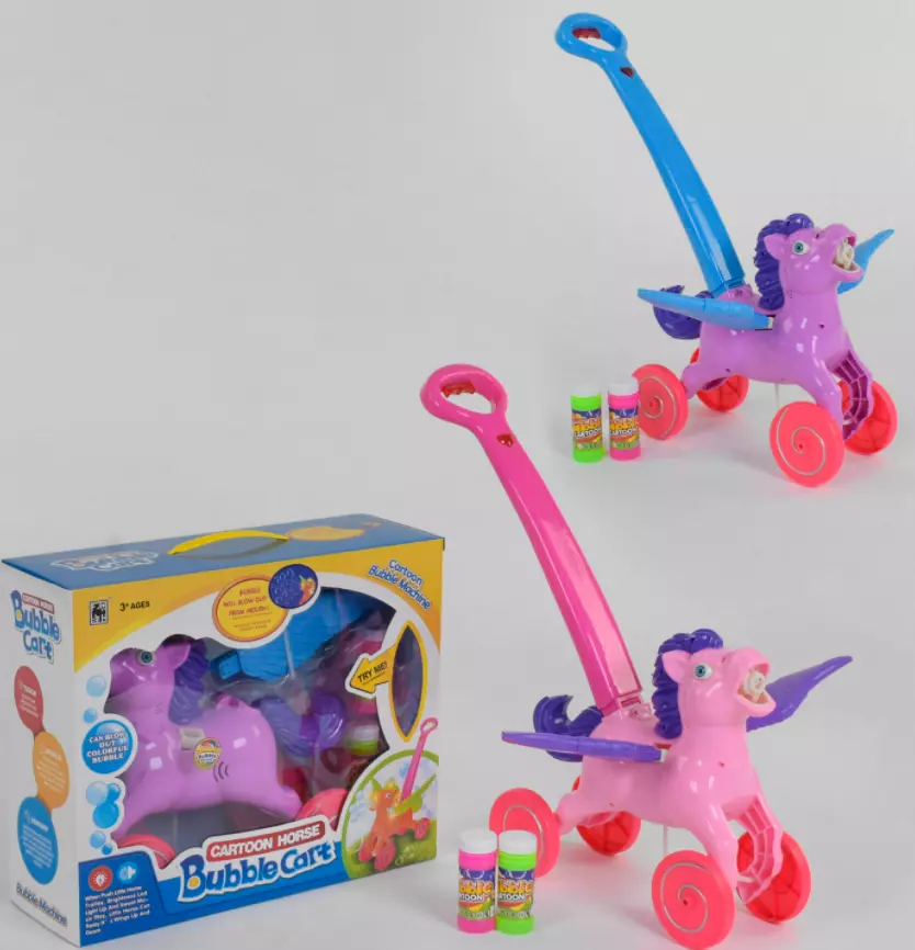 Каталка з мильними бульбашками "Конячка" FH 888 (18) 2 кольори, мелодії, підсвічування, в коробці