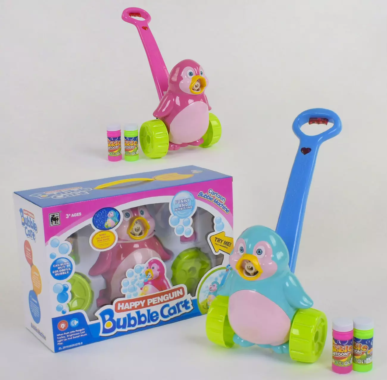 Каталка з мильними бульбашками "Пінгвін" FH 776 2 кольори, мелодія, підсвічування, коробці