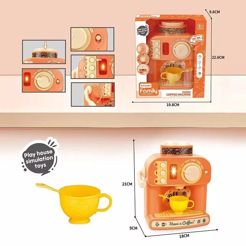 Ранок у більшості людей починається з кави. Цей запашний напій, який дарує енергію та бадьорість на початку дня потрібно вміти правильно приготувати. А з домашньою кавомашиною не потрібно нікуди йти та чекати у черзі. Адже з цією іграшковою моделлю можна створити найсмачніше лате прямо у себе в кімнаті та пригостити усіх іграшкових друзів. Цей простий у використанні агрегат має 5 режимів роботи! Він перемеле кавові зерна, приготує “енергетичний” напій, створить пінку для молока, додасть окропу та приготує найсмачніший молочний коктейль! Граючись з такою машиною дитина познайомиться з професією баристи та створить нові унікальні сюжети для ігор. Особливості: - милий дизайн; - кавомашина прикрашена гарними наліпками; - є 5 режимів роботи — перемелювання кавових зерен, подача окропу та 3 кнопки для приготування різних напоїв; - під час роботи машина відтворює характерні для неї звуки; - є рухомий елемент у вигляді трубки з повітрям; - під час приготування напоїв машинка підсвічується червоним кольором; - іграшка працює від батарейок (додаються); - до комплекту додається чашка з ложечкою; - виготовлена з якісного пластику, який є безпечним для здоров’я дитини.