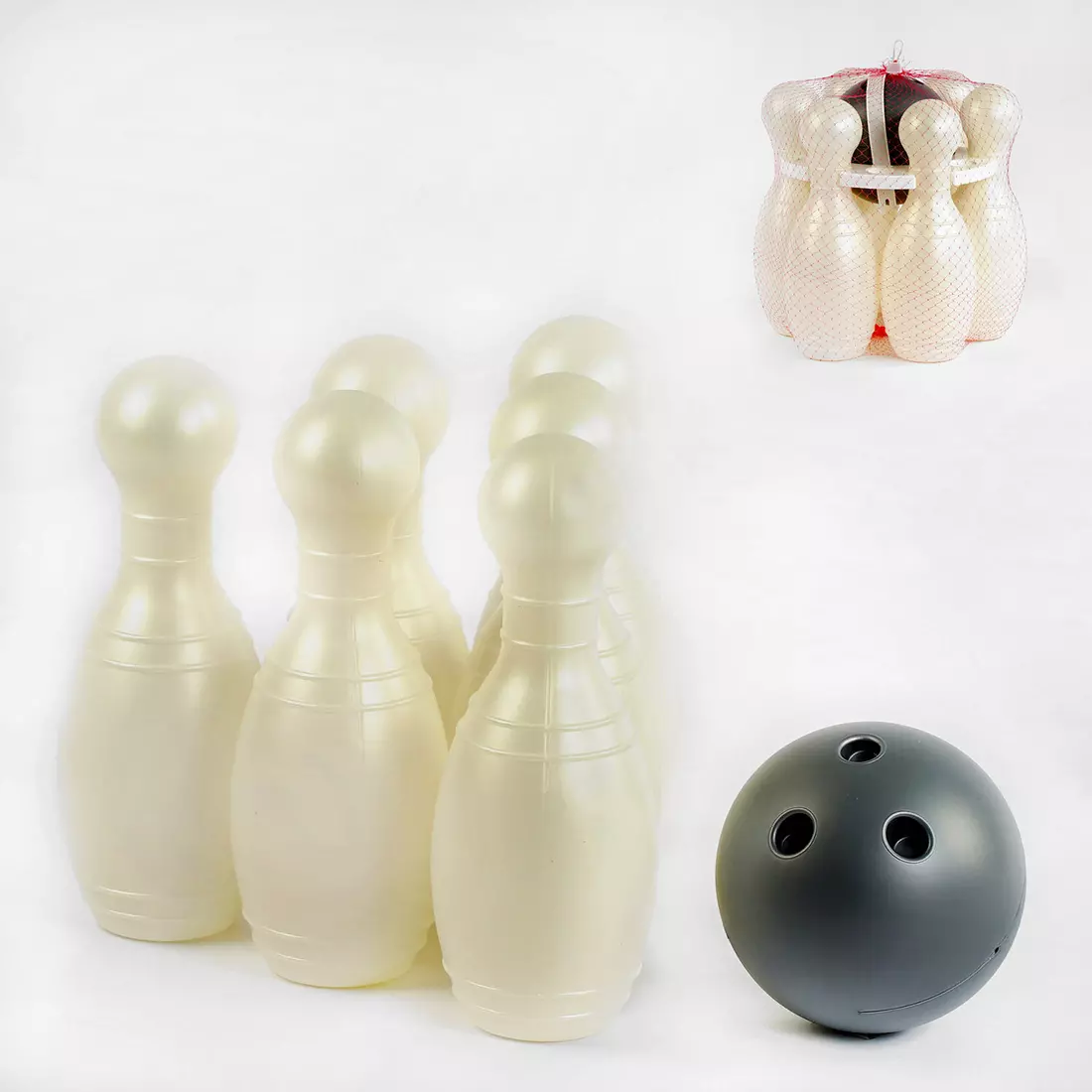 Гра в боулінг розвиває координацію рухів, цілеспрямованість і волю до перемоги. До того ж це дуже веселу розвагу, яке допоможе дитині полюбити спорт і з задоволенням їм займатися. Набір виготовлений з пластику. Комплектація: кеглі-6, куля-1.
