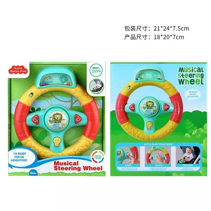 Музичне кермо “Musical Steering Wheel” подарує дитині приємні емоції вдома або на вулиці, прогулюючись у візочку. Іграшка має 4 активні кнопки, натискання на які активує звуки поворотів, клаксон та веселі мелодії. Кермо має компактний розмір та яскравий дизайн, тож малеча із задоволенням досліджуватиме нову іграшку у процесі гри. Особливості: - регульований ремінець для кріплення на ліжечко або візок; - тип живлення - 2 батарейки “АА” (не додаються); - панель приладів виконує роль брязкальця; - звуковий ефект увімкнення поворотників; - звук клаксона; - відтворення мелодій; - миготливе підсвічування.