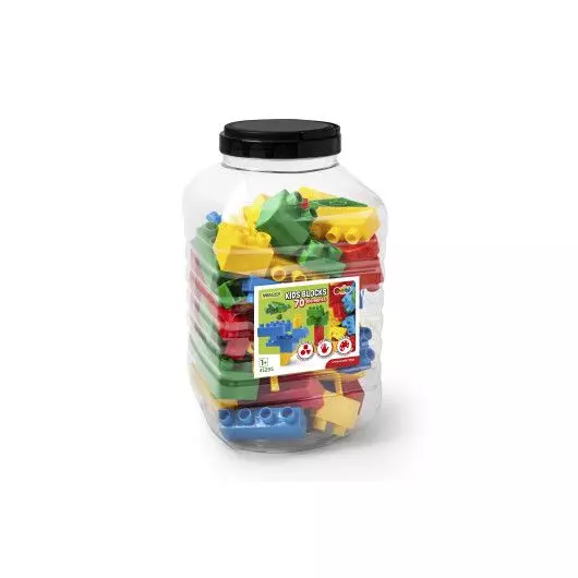 Конструктор Kids Blocks був виготовлений із дотриманням найвищих стандартів якості. Його елементи міцні, мають гладку поверхню і безпечні кути. Розмір кубиків підходить для дитячих ручок, тому із складанням і розкладанням цього конструктора у дитини не виникне жодних проблем. Kids Blocks вирізняється приємними кольорами і різноманітністю елементів. Ігри конструктором є одними з основних розвиваючих занять у дитячому віці, адже вони впливають на основні вміння дітей, від яких залежить і подальший розвиток, навіть у шкільному віці. Складання конструктора Kids Blocks розвиває уяву, логічне мислення, просторову уяву, а також покращує мануальні здібності. Конструктор Kids Blocks призначений для дітей від 1 року життя. Набір упакований у компактну банку, яка полегшить зберігання кубиків по закінченню гри. Конструктор Kids Blocks 70 ел. (в банці): складається з 70 кольорових кубиків різної форми і кольорів виготовлений з високоякісного нетоксичного сертифікованого матеріалу має гладку поверхню і безпечні кути розвиває уяву, креативність і творче мислення, дрібну моторику, покращує просторову уяву і координацію зору допоможе у вивченні кольорів і лічбі упакований у компактну банку (30 см висоти) для дітей від 1 року