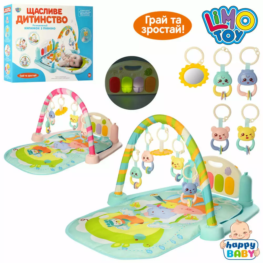 Килимок для немовляти M 5470 AB дуга, підвіска, піаніно, муз., світло, 2 кольори,бат.,кор.,47-36-9см