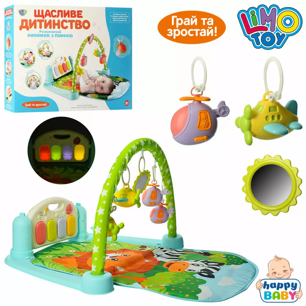 Килимок для немовляти M 5471 дуга, підвіски 5 шт., піаніно-муз., світло, бат., кор., 47-36-9 см.