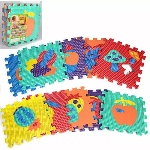 Килимок Мозаїка M 2622 EVA, фрукти овочі, 10 деталей, масаж, 6 текстур, пазл, 31,5-31,5-10 см