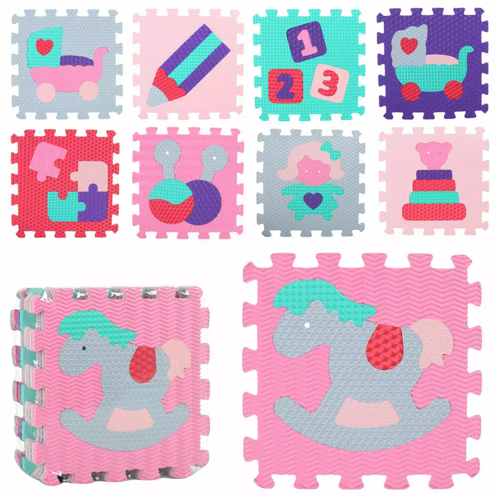 Килимок Мозаїка M 2631 EVA, іграшки, 9 дет., 6 текстур, пазл, кул., 32-32-9 см.