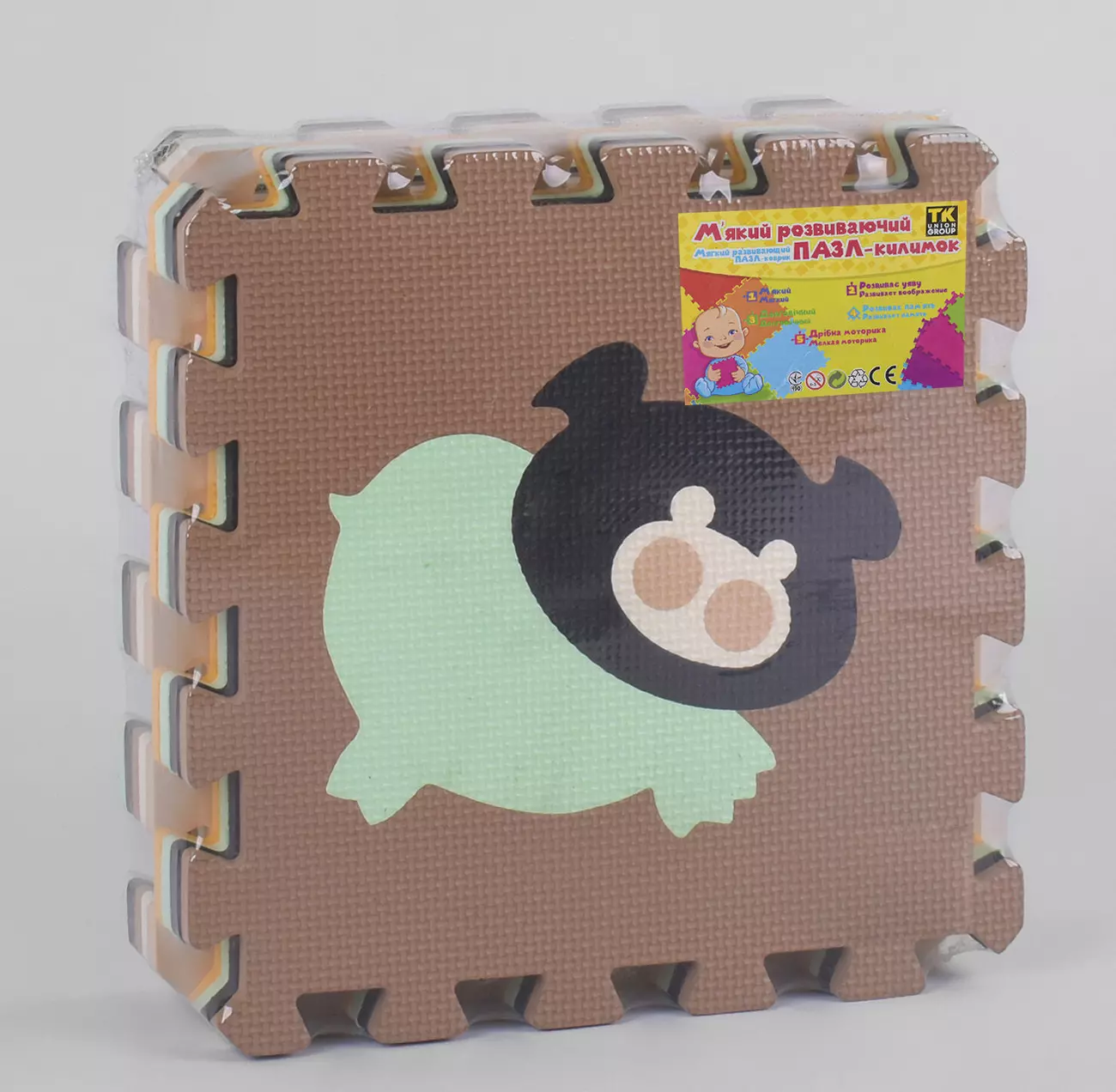 Масажний килимок пазл - допоможе Вам створити безпечну і розвиваюче середовище для повсякденних ігор малюка. Масажний килимок складається з 9 елементів. Вони легко скріплюються між собою і надійно фіксуються один з одним. На кожному елементі зображений малюнок, виконаний він в контрастних кольорах, що сприятливо впливає на розвиток очей, і оснащений простим і зрозумілим зображенням. Моделі цієї серії відрізняються підвищеною стійкістю до! EVA - це сучасний екологічно чистий матеріал. Він має мікропористої структури закритоячеістие типу. Володіє рядом вагомих переваг: - легка вага - гнучкий і еластичний - має амортизаційні властивості - стійкий до розтягування і деформації - добре переносить низьку і високу температуру, а також різкі перепади - не викликає алергічних реакцій - не має запаху