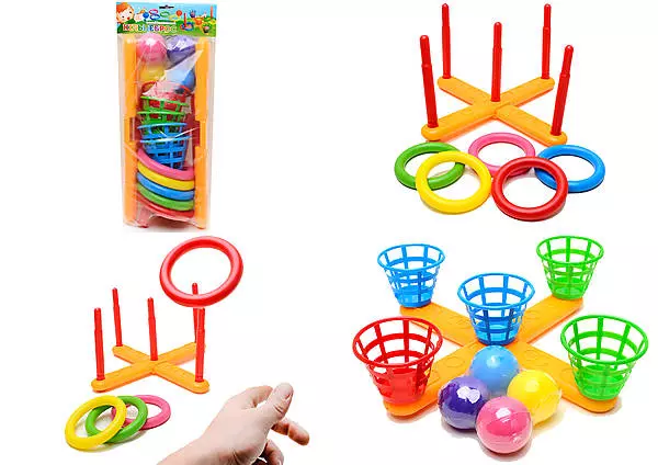 Ігровий набір «Кільцекид» захоплює не тільки малюків, але також їх батьків. Набір включає в себе підставу у вигляді хрестовини, 5 стійок, комплект з 6 кілець, 5 кошиків і комплект з 6 кульок. Стійки кріпляться на хрестоподібному підставі, одна в середині і чотири по сторонам. Для виготовлення підстави використаний якісний матеріал, який поглинає звуки падаючих на нього кілець. Дана іграшка розвиває дрібну моторику і увагу, координацію. Ігровий набір «Кільцекид» виконаний з безпечних для дітей матеріалів.