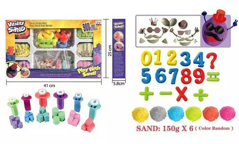 Кінетичний пісок 1901 A/B/E (18/2), 900 г, 16 форм, 6 кольорів піску, 6 екструдерів, в коробці
