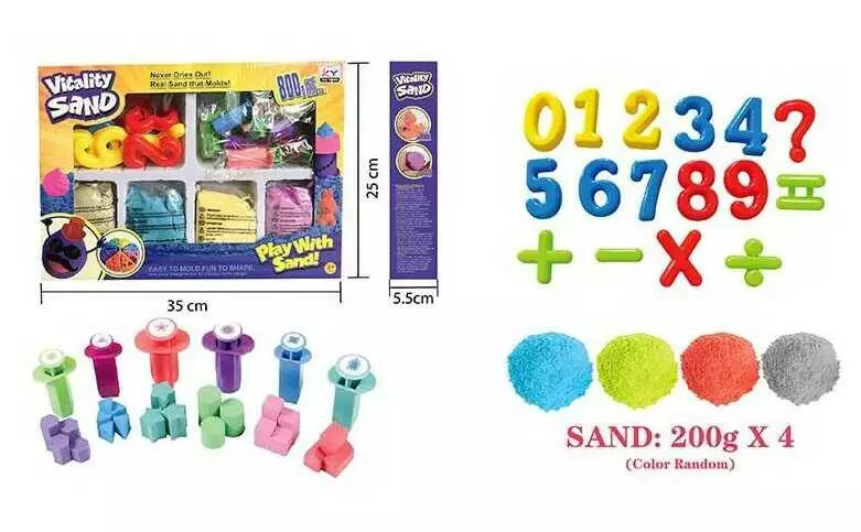 Кінетичний пісок 1902 A/C/E (24/2), 800 г, 4 кольори, 16 форм, 6 екструдерів, в коробці
