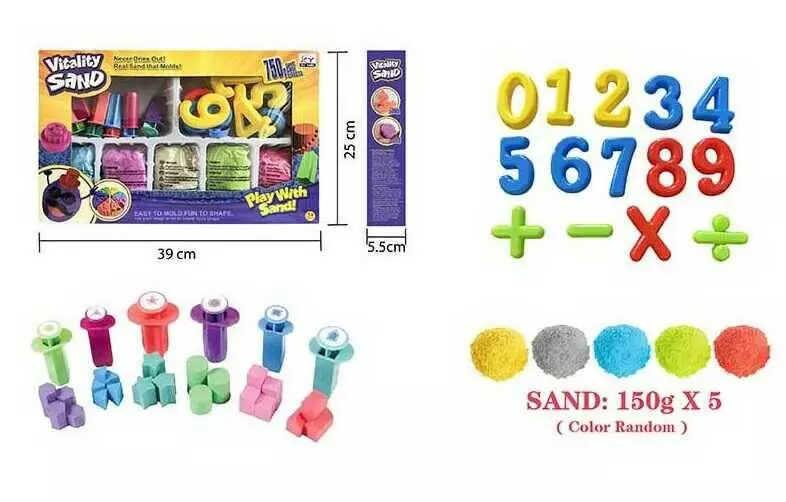 Кінетичний пісок 1903 B/E/G (24/2) 750 г, 5 кольорів, 16 форм, 6 екструдерів, в коробці