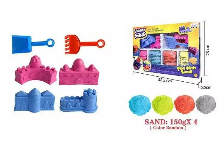 Кінетичний пісок 1904 G/J/K (24/2) 600 г, 4 кольори, інструменти, 4 форми, в коробці