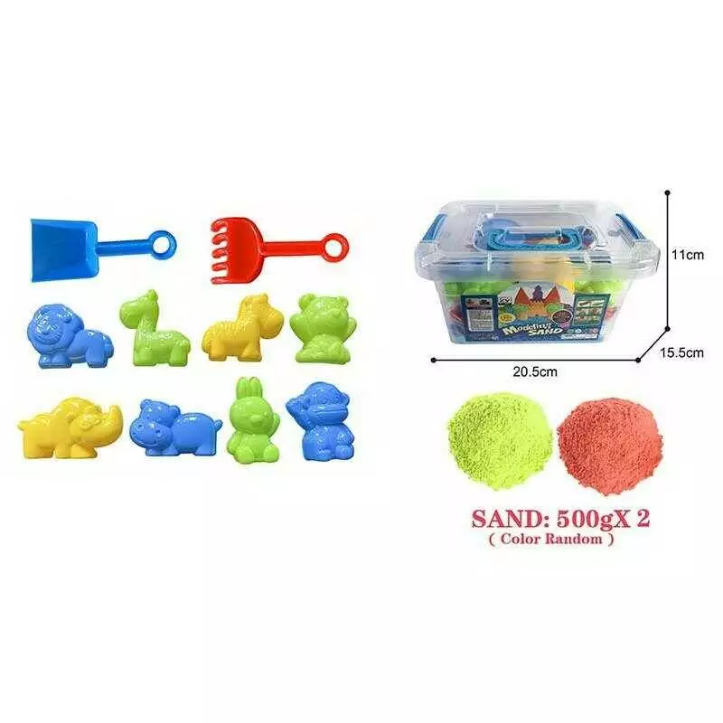 Кінетичний пісок 3386 B 9 (18/2) 1000 г, 8 форм, 2 кольори, інструменти, в боксі