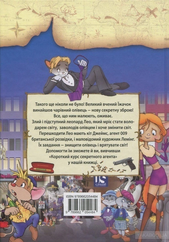 Автор:Віктор Запаренко, Аня Амасова Видавництво: Сім кольорів Серія книг:Морські пригоди Мова:Українська Вік:6+ Кількість сторінок: 208 с. (кольорові ілюстрації) Формат:145х210 мм Палітурка:Інтегральна Папір:Офсетний ISBN:978-617-70830-5 Тип:Паперова Юний художник Лемминг вирушає до Америки, щоб стати знаменитим. У дорозі він знайомиться з котом Джеймсом - секретним агентом. Тепер Лемминг повинен допомогти агенту 009 позбавити світ від нового секретного зброї, здатного змінити весь світ! Вас чекають вражаючі спецефекти, фантастичні винаходи, погоні і перестрілки. Трошки страшно, але, як завжди, - дуже смішно!